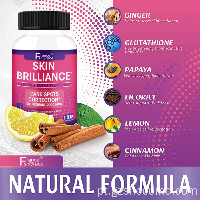 1. Tratamento do Gentle - Nossas cápsulas de clareamento da pele podem ajudar até mesmo o tônus ​​da pele e reduzir a aparência de manchas e manchas escuras para uma aparência mais uniforme.
